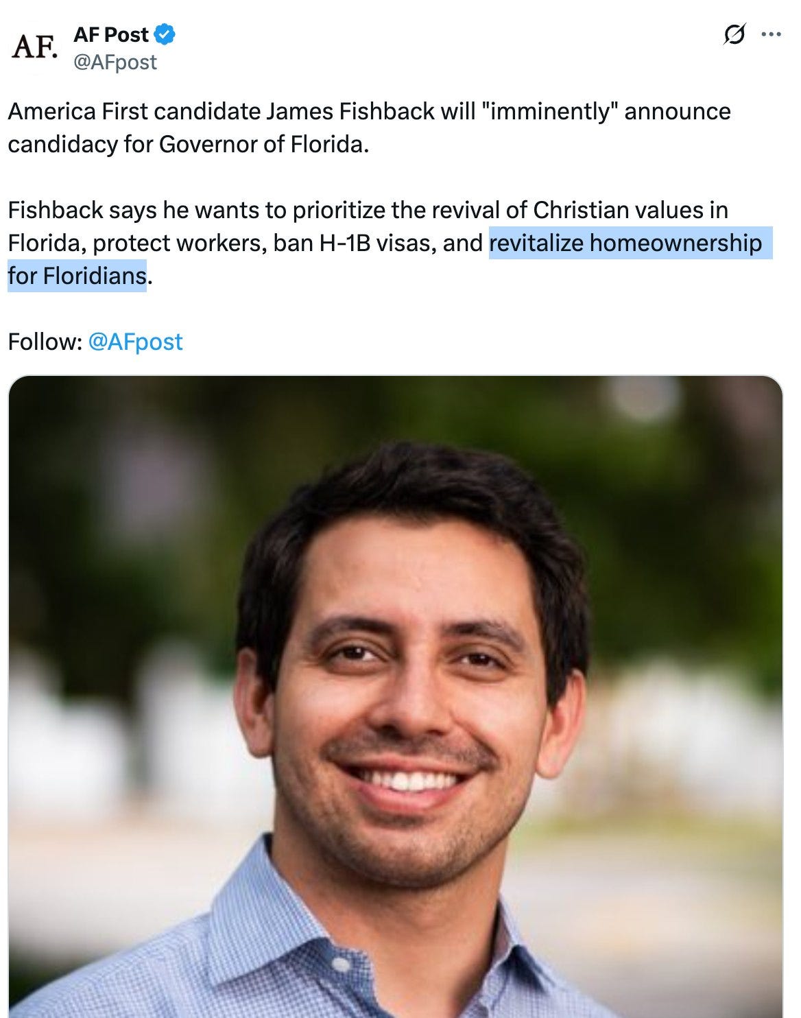 Local high school grads have been set up for failure against incoming homebuyers in an under-supplied market. Florida politicians are going to be blindsided by how sharp of an issue that is. Talking about ending property taxes is great if you are a homeowner, but it will not purchase with the incoming electorate.